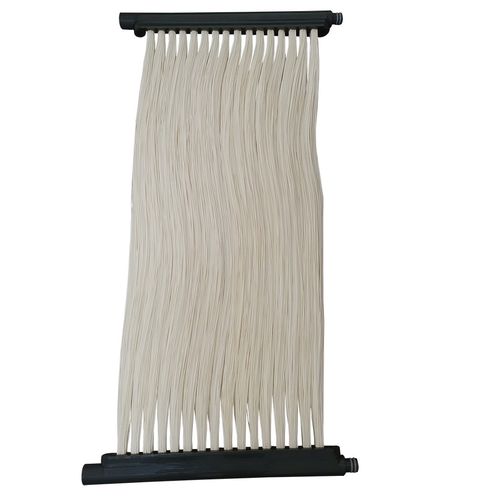 加强型MBR膜 不断丝MBR膜 (产品型号:NM-RMBR-1010) 本产品特别适用于一体化污水处理设备或小型污水处理项目(100立方每天内),膜池在2米左右,具有占地面积小,安装及维护方便,结构简洁、设计合理。
